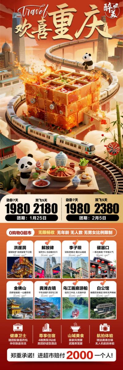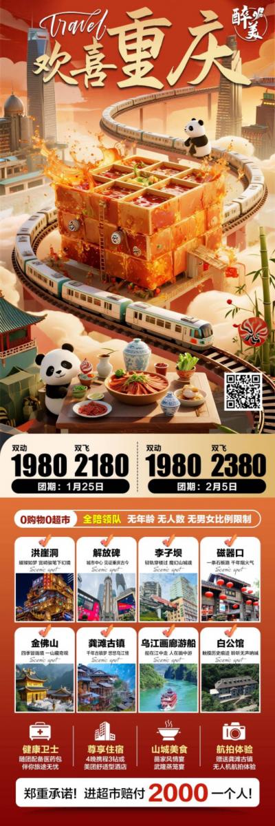 旅游 【欢喜重庆,奇幻启程】 (价格透明,一价含全程领队陪伴) 🌟 我们的承诺,比洪崖...