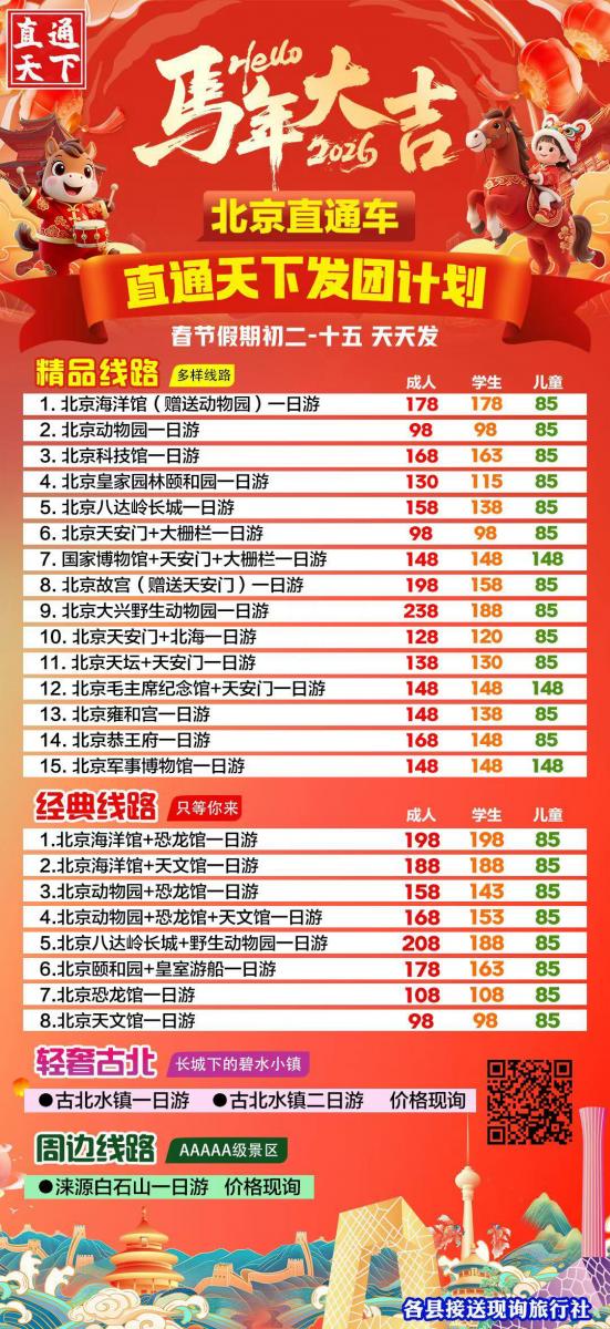 [爱心]明天以下线路大量余位: